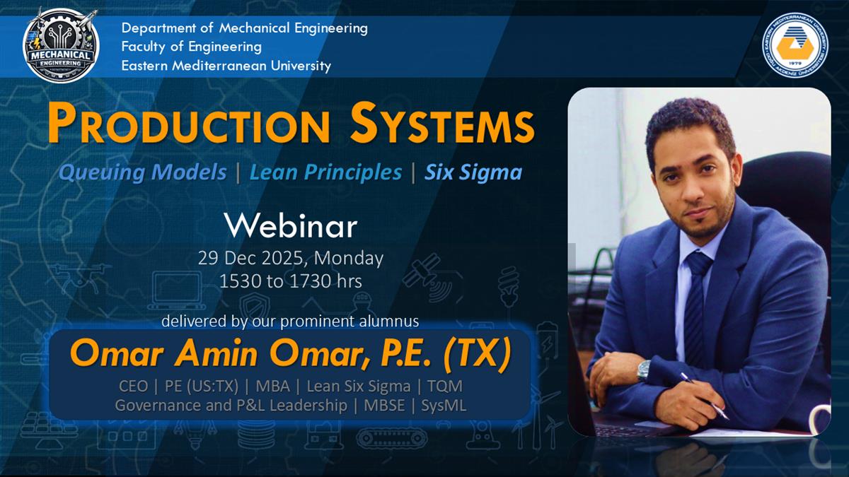 Join us on December 29th for a comprehensive webinar aimed at EMU's mechanical and mechatronics engineering students. This session will explore the full spectrum of production systems, including various queuing models and their impact on efficiency, as well as the integration of Lean principles and Six Sigma methodologies.